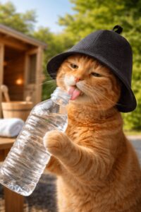 サウナでは大量の汗をかくため、水分補給はとても重要です